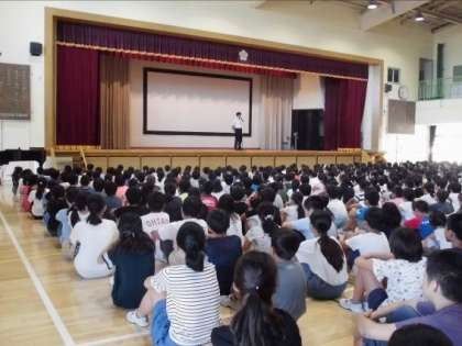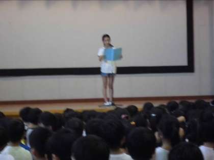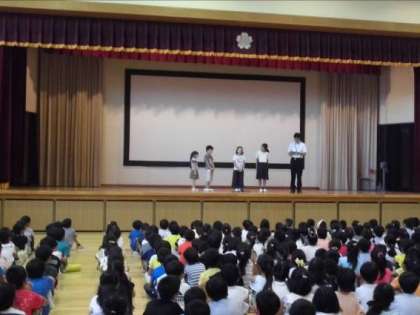 二学期は5名の友達が加わりました。舞台の上で、しっかり自己紹介ができました。