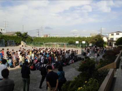 9月6日(木)朝、校庭に6年生が集合しました。今日から2泊3日で日光へ移動教室へ行きます。