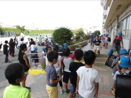木曜日は、3年生です。ピロティで元気いっぱいにあいさつをしました。今日は、6年生が日光に出発しました。6年生に