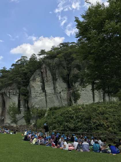大谷資料館を出てすぐの公園でお家から持ってきたお弁当を広げています。