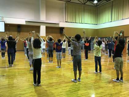 今朝も6時に起床し、全員でラジオ体操を行いました。今日のラジオ体操は英語バージョンで、楽しく体を動かすことができました。