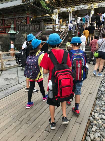 大修理が終わっており、色鮮やかな彫刻や魔除けの逆柱を見ることができました。しおりの問題を解きながら、たくさんの建造物や様々な動物の彫刻などを時間いっぱい見ていました。