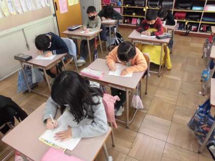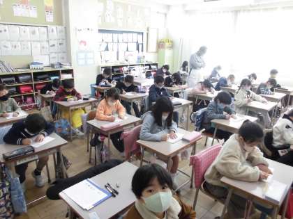 2年生では、書き初め大会に向けて硬筆が始まりました。