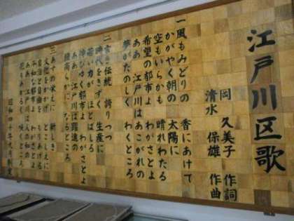 区民まつりをはじめ、いろいろな機会に愛唱されてきた江戸川区歌。ふるさとの歌として児童の成長と共に歌い続けていきたいものです。