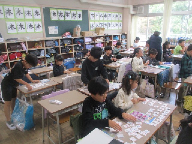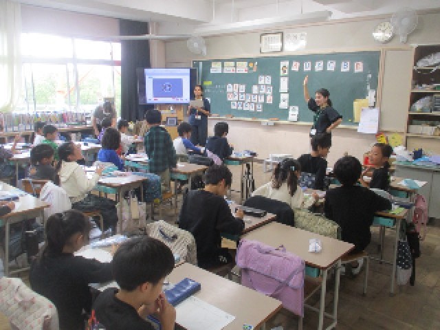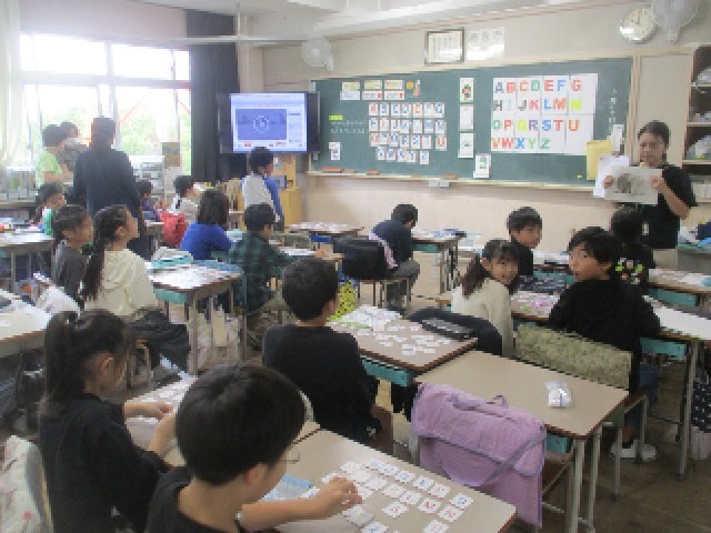 3年生の外国語活動の様子です。アルファベットを並べ替えて、単語を作っています。