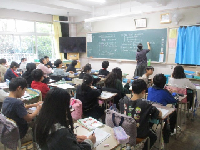 5年生の算数の授業の様子です。人口密度について学んでいます。江戸川区と渋谷区と新宿区を人口と面積から比較しました。子供たちは新宿区の人口密度が3つの区では最も高いのではと予想し、計算に取組んでいました。