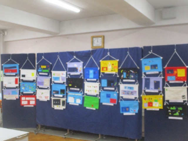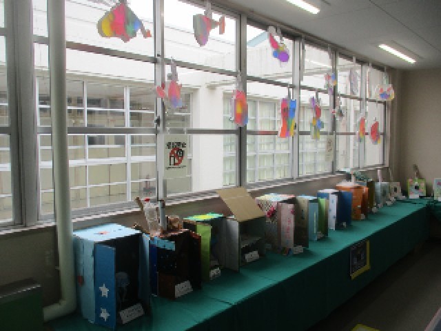 1・2・3階の廊下と家庭科室では、1・3・5年生が図画工作科や家庭科で製作した、自分の思いが存分に詰まった作品が展示されています。作品作りは限られた授業時間の中で表現する難しさがあります。しかし、同じテーマで授業を始めても、表現の仕方はそれぞれに違いがあり、各作品にひきつけられます。今週は、全学年が、それぞれの作品のよさを味わう鑑賞活動にも取り組みます。