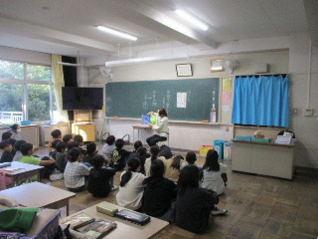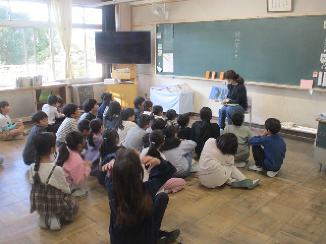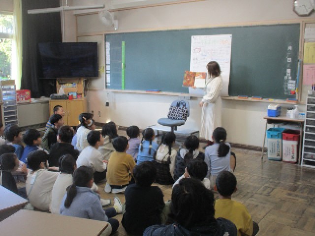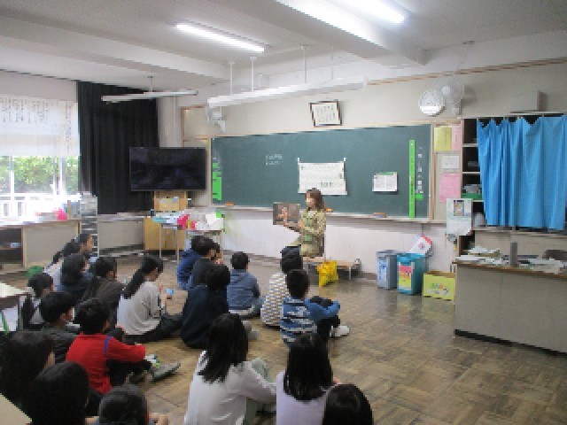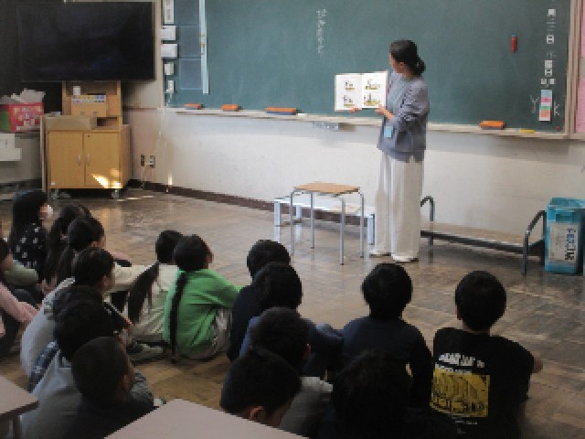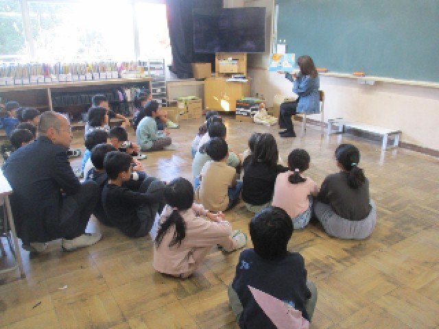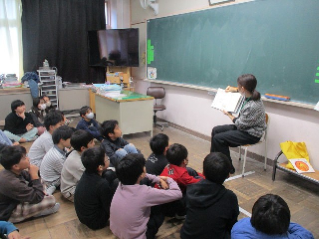 写真は、3・5年生です。読み聞かせボランティアの皆様の様々な工夫をしながら、子供たちの関心を高めていただいており、感謝しています。子供たちが様々な本に興味をもち、読書に親しんでくれるよう、引き続き学習でも取組んでまいります。