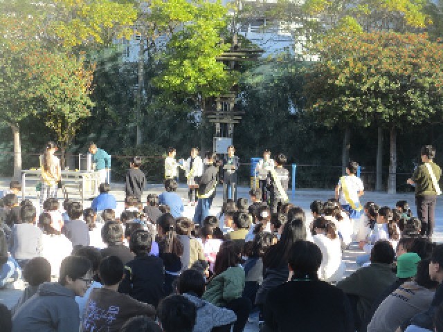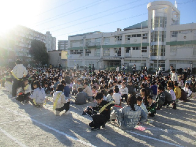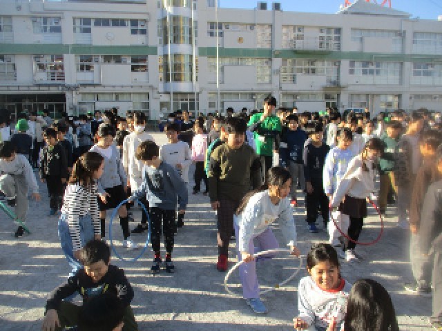 今朝は、計画委員会主催のたてわり班によるフープリレーの児童集会がありました。フープをくぐって後ろの人に回し、後ろまで行ったら前の人に手渡しで回します。どの班が良いタイムであったのか、結果は、お昼の放送で分かります。