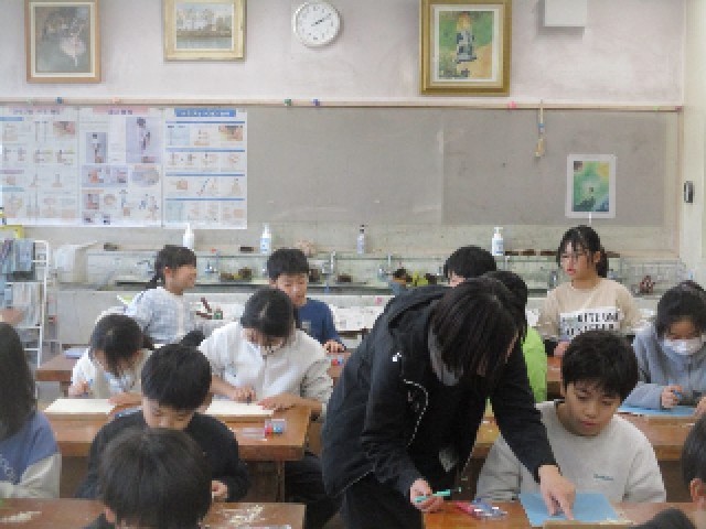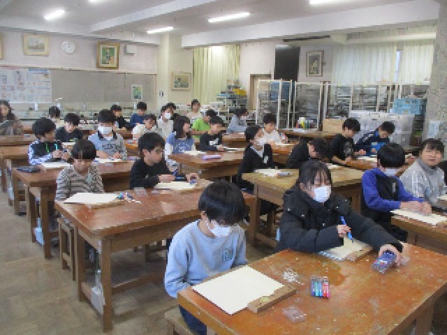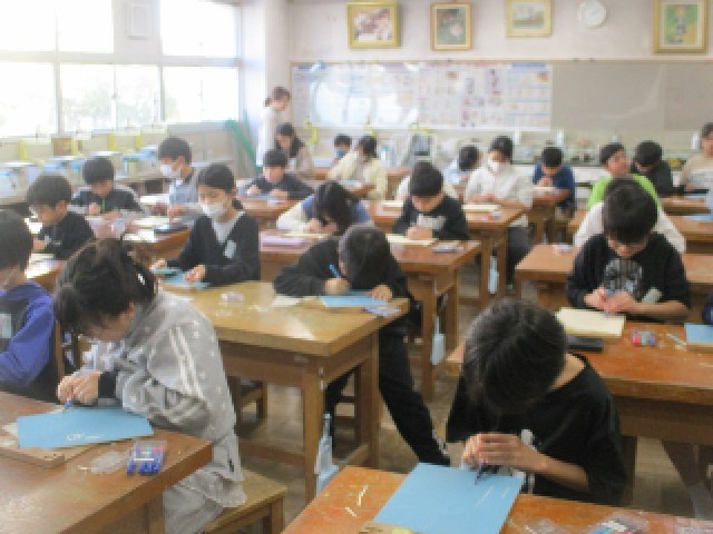 5年生の図画工作科の授業の様子です。彫刻刀を活用し、様々なラインを彫りながら、デザインしています。どのようなデザインが刷り上がるのか、楽しみです。