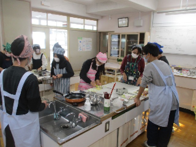 6年生の家庭科の授業の様子です。ベーコンポテトを作っています。けがをしないように慎重に包丁を動かし、じゃがいもの皮むきに挑戦しました。