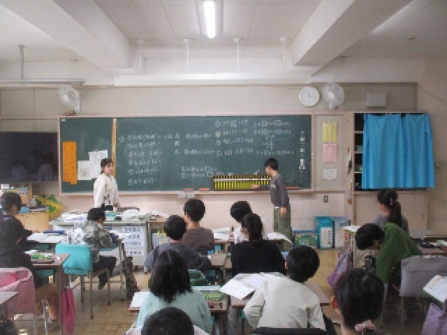 4年生の算数科の授業です。そろばんを活用して計算に取組んでいます。なかなか慣れずに苦労をしていましたが、みんな前向きに取組んでいます。