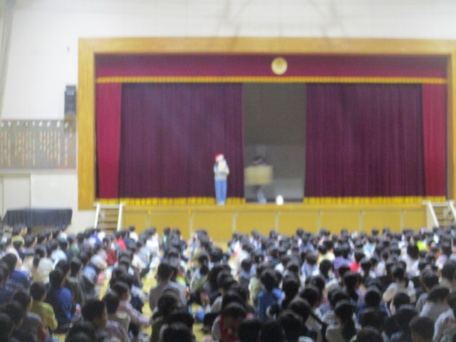 今朝は体育館で、何が通りましたかクイズと音楽に合わせて全校で踊りました。集会委員会は、いつも様々なアイディアで全校児童を楽しませてくれます。