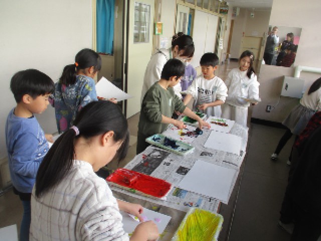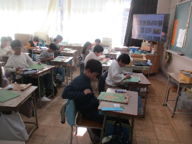 3年生も4年生も図画工作科で版画に取組んでいます。3年生は紙皿やモールなどを活用し、そのものに色をつけ、版画にしています。4年生は彫刻刀を活用し、自分の下絵にそって切り出し、版画にします。どのような作品となるのか、楽しみです。