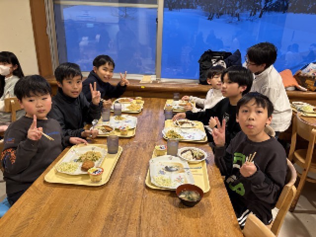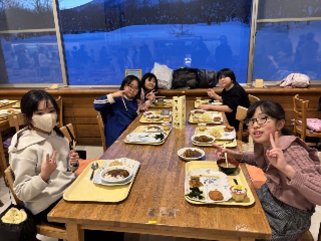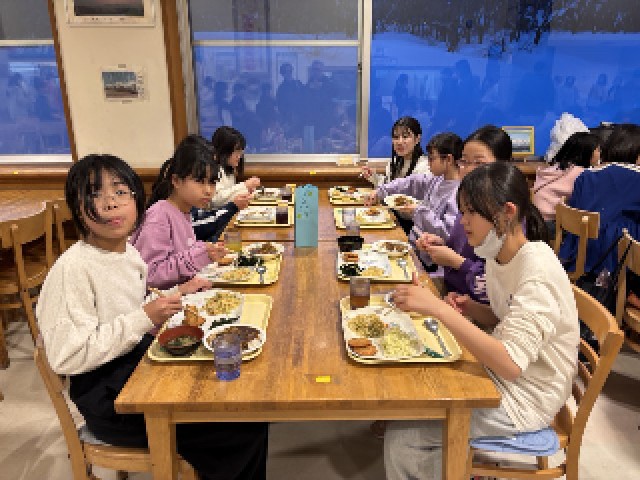 夕食は、カレー、カツ、焼きそば、大根の煮物、サラダなどです。食欲旺盛、みんな美味しくいただきました。