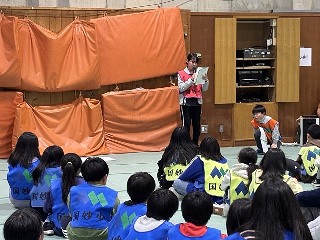 レクリエーションの最後は、みんなで校歌を歌いました。妙高の地に清新第一小学校の校歌が響き渡りました。