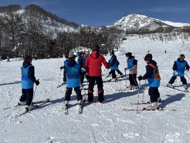 スキー教室の様子です。自分が思った方向に進めず苦戦していますが、段々と上達してきました。