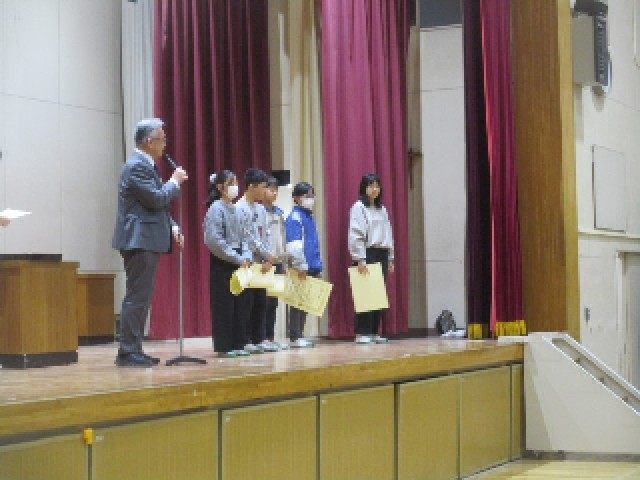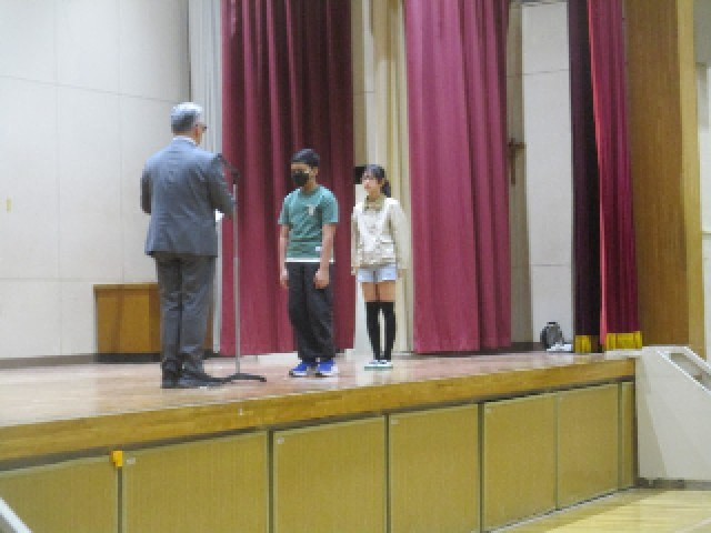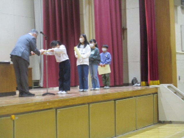 本日の全校朝会では、校長から「思いやり」についての話がありました。その後、健康努力児童、音楽での作詞、書き初め大会、東京都公立学校美術展覧会等で優秀な成績を収めた児童に、各種団体からの賞状を渡しました。おめでとうございました。