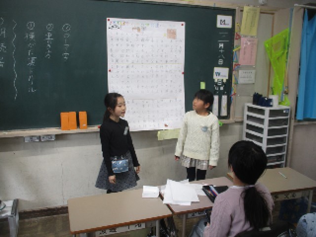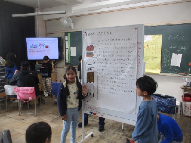 3年生はこれまでに調べた「昔と今」について学年全体で授業をしました。食事、洗濯、台所用品、電話、江戸川区、住居などの昔と今が、様々な方法でまとめられました。タブレット、模造紙、ノート、かるた、ペープサート、ゲーム形式など、まとめ方や発表の仕方は多様でした。学んだことを知ったもらいたいという意欲にあふれた、各ブースでの発表となりました。