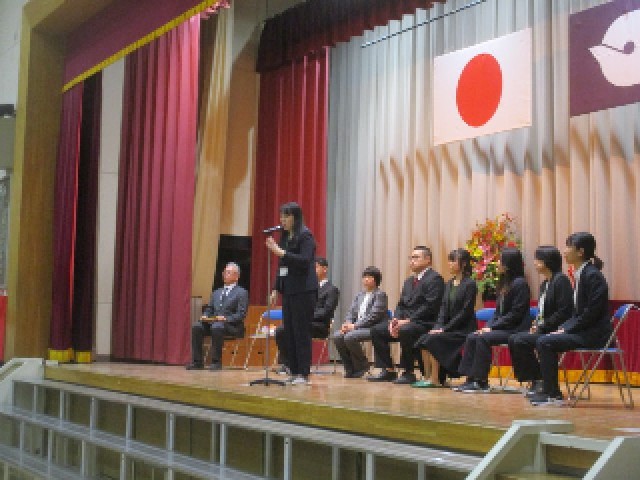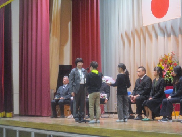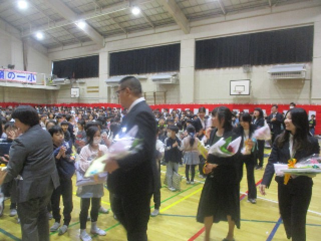 子供たちが書いたお手紙を代表児童が読み、花束とともにお渡ししました。その後、去られる先生方からご挨拶をいただきました。清新第一小学校の子供たちが大好きな想いにあふれ、感謝の心がこもった離任式になりました。