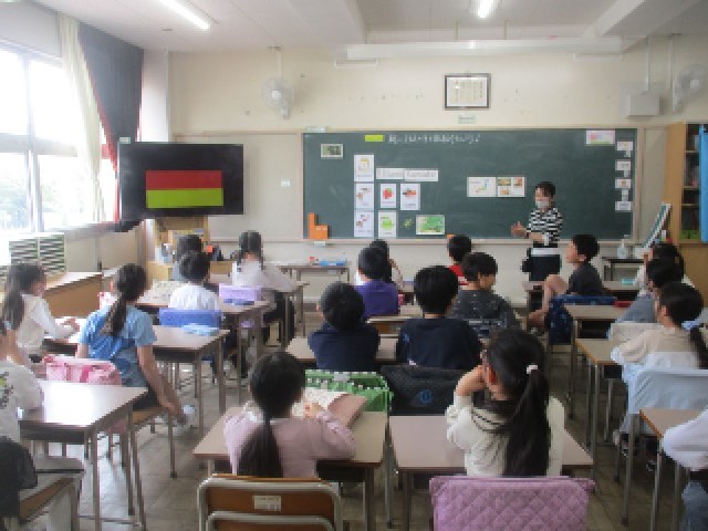 体育館では6年生が体育専科による体ほぐしの運動を、算数科室では6年生が習熟度別学習によるXを使った解き方を、Englishroomでは3年生が外国語活動を学んでいます。今年度から5・6年生の教科担任制、3年生からの外国語専科の授業など、新たな取組が始まっています。子供たちの学習意欲を引き出すような指導を心がけてまいります。