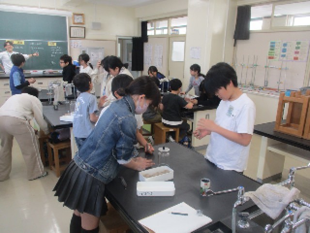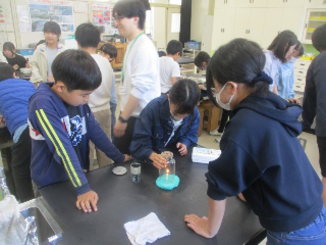 理科室では6年生の理科の授業が教科担任制で行われています。ものの燃え方について、班ごとに実験をしました。マッチで火をつける経験があまりない児童もチャレンジしていました。火が燃え続けるには・・・実験から何が分かったのか、ぜひ、ご家庭でたずねてみてください。
