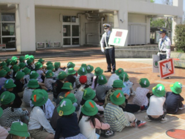 1年生は、本日の3校時に交通安全教室を行いました。葛西警察署の警察官にお越しいただき、ご指導いただきました。警察官から、交通事故に遭うことが多い年齢や信号の色によって守るべきこと、標識などについて話を聞いたのち、クラスごとに学校付近の歩行訓練をしました。交通ルールを守ること、周りをよく見て歩くことなど、登下校時のみならず放課後や休日などについても、学校と家庭で子供たちに伝えていくことが大切です。
