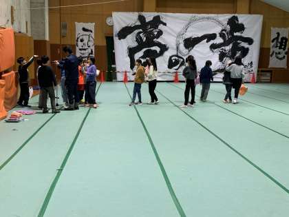 今日のキャンドルセレモニー前のレクのために、レク係が練習をしている様子です。
