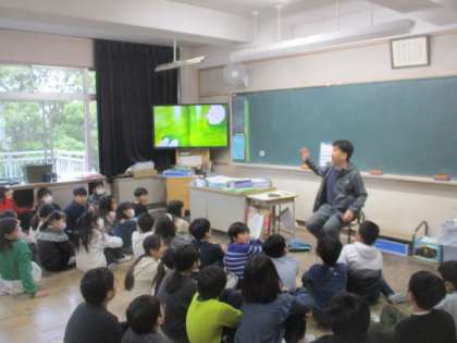読み聞かせ交流会の様子です。今日は先生による読み聞かせです。