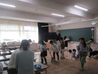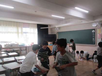 清掃の時間の4年生の様子です。