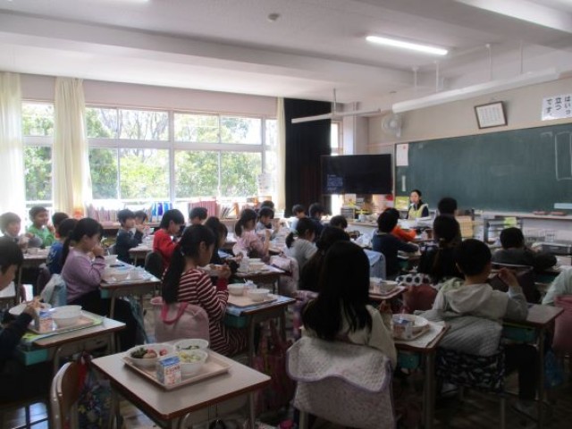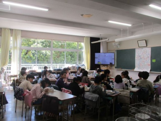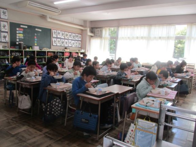 3年生3クラスの給食の食事中の様子です。