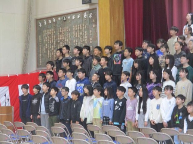 1校時から6年生の失業式練習がありました。写真は「旅立ちの歌」の練習を行っている場面です。