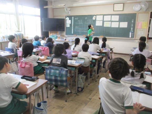 2校時の3年生3クラスの授業の様子です。上から社会科の授業、国語科の授業、算数科の授業です。