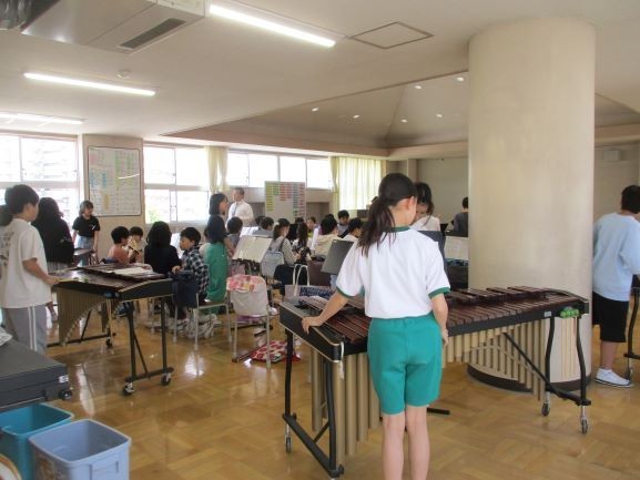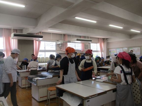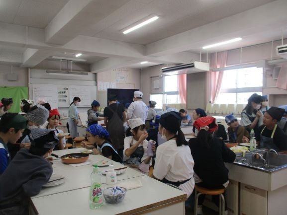 2校時の6年生は3階の家庭科室、音楽室での授業の様子です。家庭科は調理実習です。