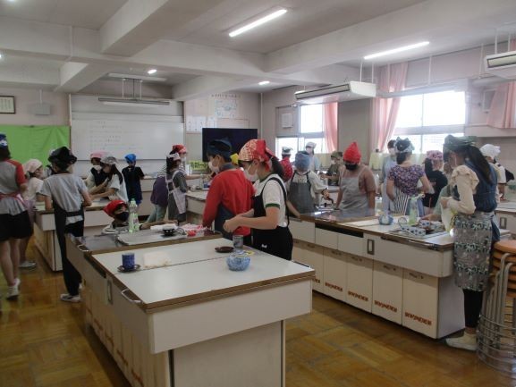 5校時の5年生3クラスの授業の様子です。家庭科の調理実習、算数科の授業、国語科の授業です。