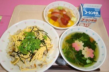 ちらしずし・すまし汁・ひなまつりポンチ・牛乳