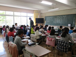 4年生の授業です。昨年度と比べ1クラス増で人数が減った分、全体的なゆとりができた感じがします。