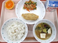 ライスコロッケ・小松菜ペペロンチーノ・フレンチサラダ・白インゲン豆のスープ・牛乳