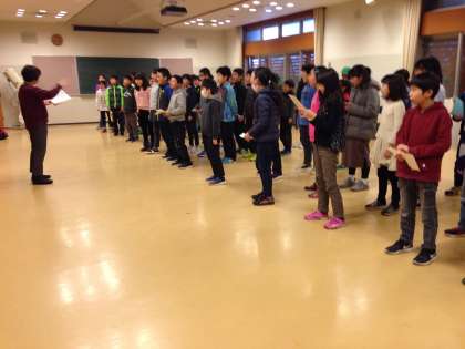 閉校式の前に卒業式の歌練習をしています。