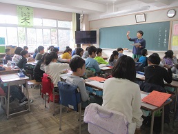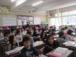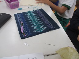 第2校時の授業です。2年生の授業では、西葛西中のチャレンジ・ザ・ドリームの生徒も授業の手伝いをしていました。写真の下は、6年生の家庭科の授業で作成しているスエーデン刺繍の作品です。見事ですね。