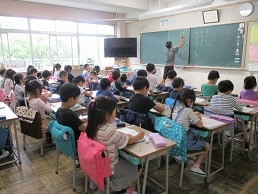 1年生の授業風景です。学校公開では多くの保護者の方の前で少し、普段通りとはいかなかったかもしれません。この写真から見る様子はどうですか。