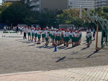 今日から、6年生が.体育大会に向けての朝の練習が始まりました。
