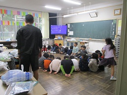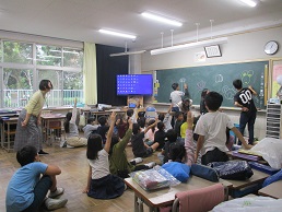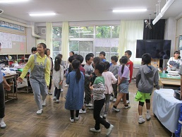 給食の時は静かなグループも、ゲームになると元気いっぱいでした。