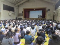 保護者の方々や職員によるアーチでの見送りの様子です。