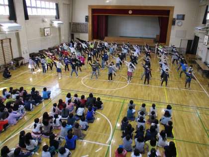 最後は90名によるボディパーカッションです。3年生は4年生の演技に圧倒されていました。自分たちが作る1年後の2分の1成人式のイメージにつながるでしょう。