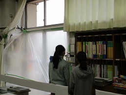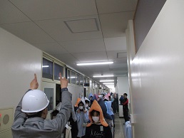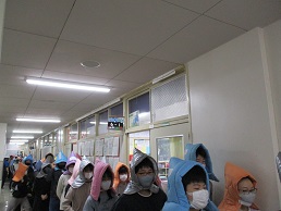 地震が収まった想定ですぐに整列です。天気が良ければ、校庭に避難します。そして今年度最後なので児童代表の言葉がありました。