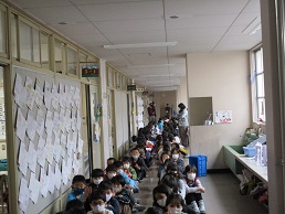 児童代表の言葉を聴いている児童の姿です。