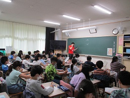 運動会練習後の3校時の5年生の授業です。気持ちを切り替えて授業に臨んでいました。