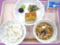 にんじんごはん・ぎせいどうふ・ごまあえ・とり肉とやさいの汁物・