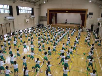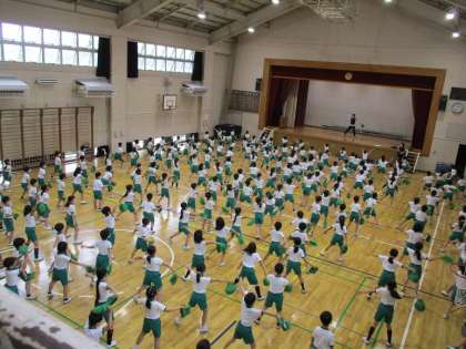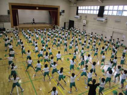 5校時、体育館で運動会表現の練習です。
